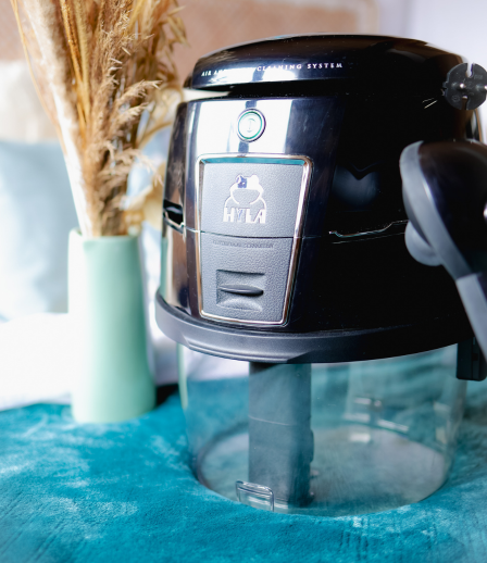 Der Hyla ist ein innovatives Reinigungssystem, das ein patentiertes Wasserfiltersystem und einen Separator verwendet, um Schmutz, Allergene und Schadstoffe aus der Luft und von Oberflächen zu entfernen – ganz ohne Beutel, Filter oder Chemie.